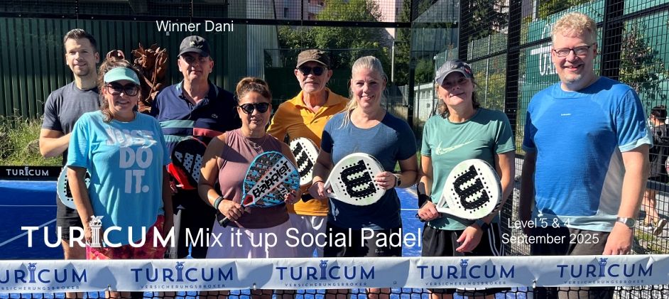 TURICUM Mix it up Social Padel - Anmeldung als Einzelperson. Maximal 8 Teilnehmer:innen. Es werden 7 Runden à 15 Minuten gespielt. In jeder Runde hat man eine(n) neue(n) Partner:in und spielt zweimal gegen alle anderen Teilnehmer:innen. Startgebühr pro Person CHF 40. Turnierdauer 2 Stunden.